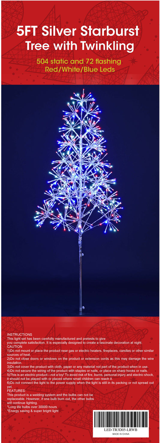 5' Red, White and Blue Silver Tree