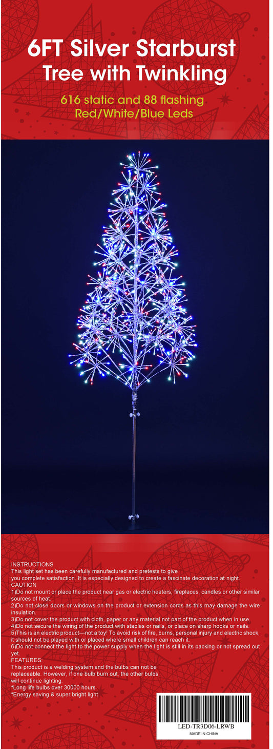 6' Red, White and Blue LED Tree with Silver Frame
