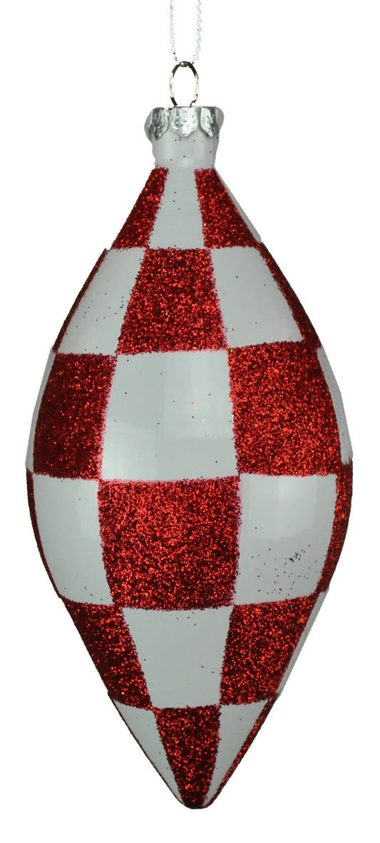 4 Pack of Red and White Checkered Teardrop Ornaments with Glitter Enhancments