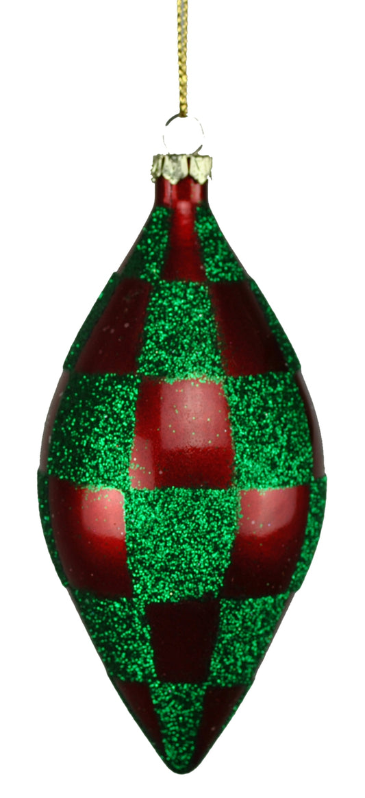 4 Pack of Red and Green Checkered Teardrop Ornaments with Glitter Enhancements