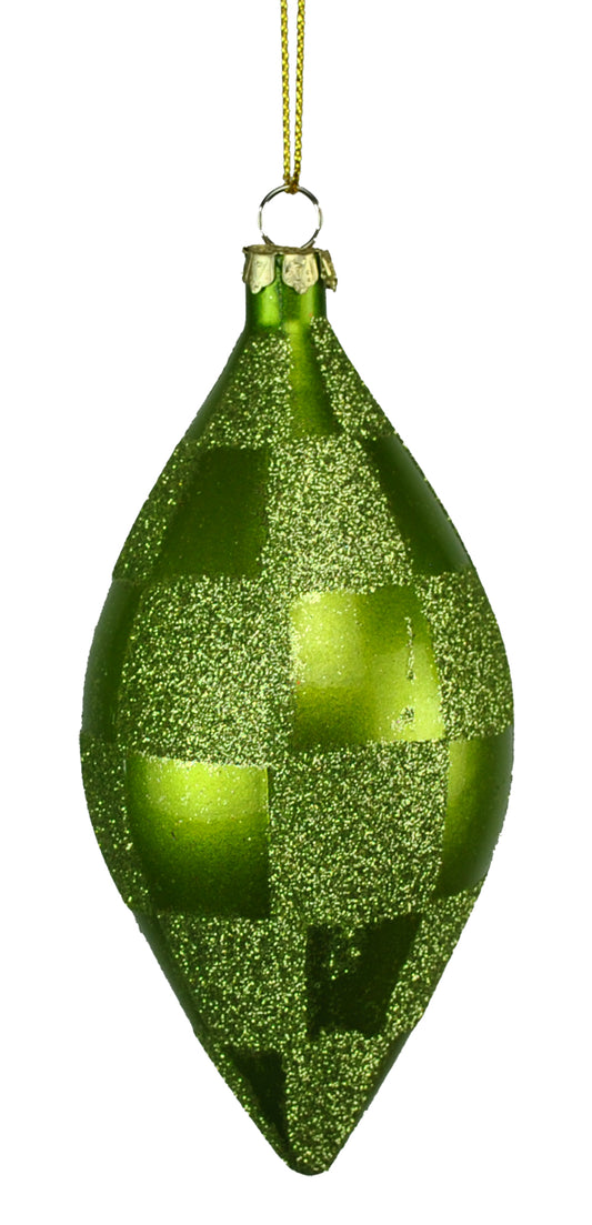 4 Pack of Lime Green and Sage Checkered Teardrop Ornaments with Glitter Enhancements