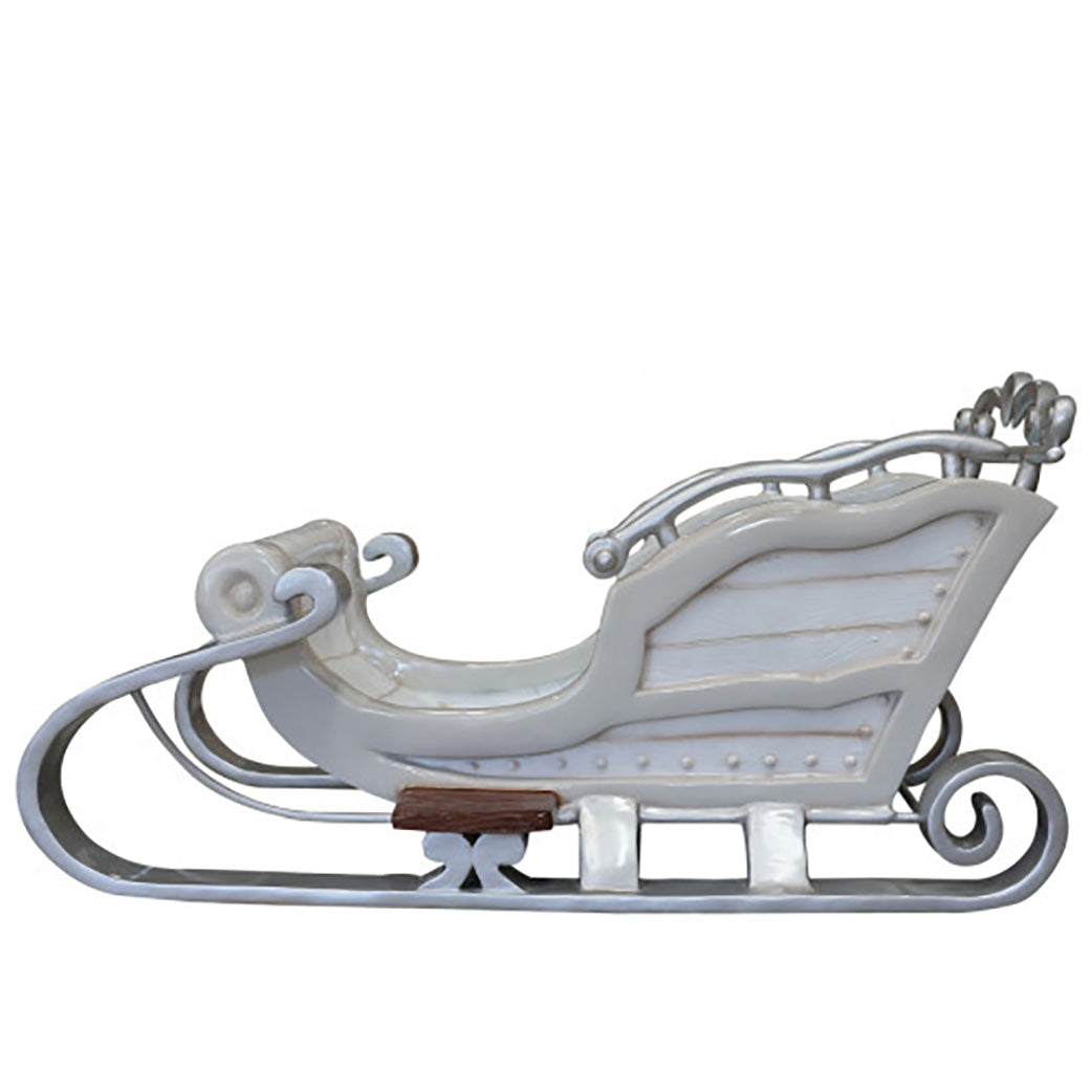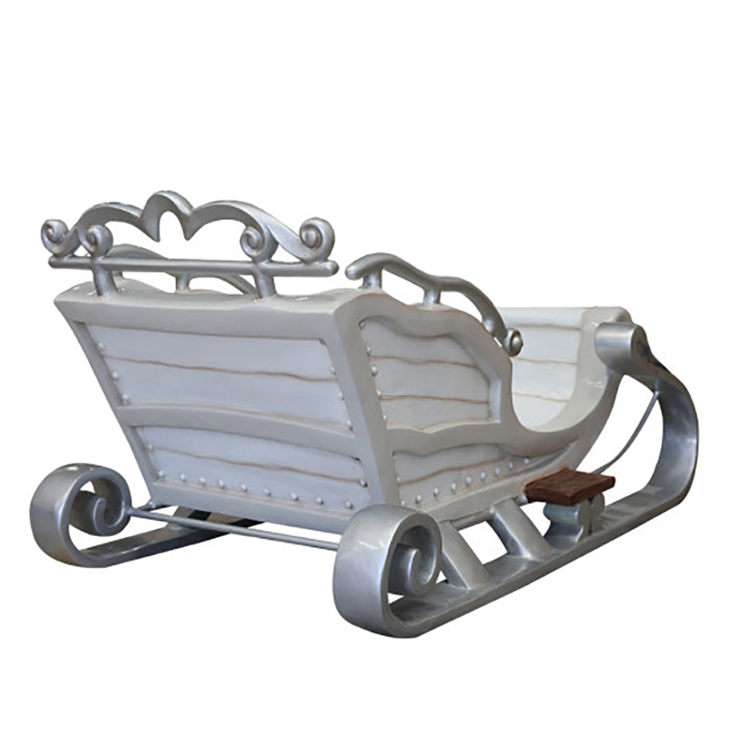 Get pulled into the snowy season in this 2 Person White Sled! With 6.5' of width, blue cushy seats and a sleek white exterior. this sled is not only the comfiest and prettiest one around, but also makes for a great photo op and winter decor option. It's silver base and trimming compliment the white of the sled and offset the dark footsteps nicely.