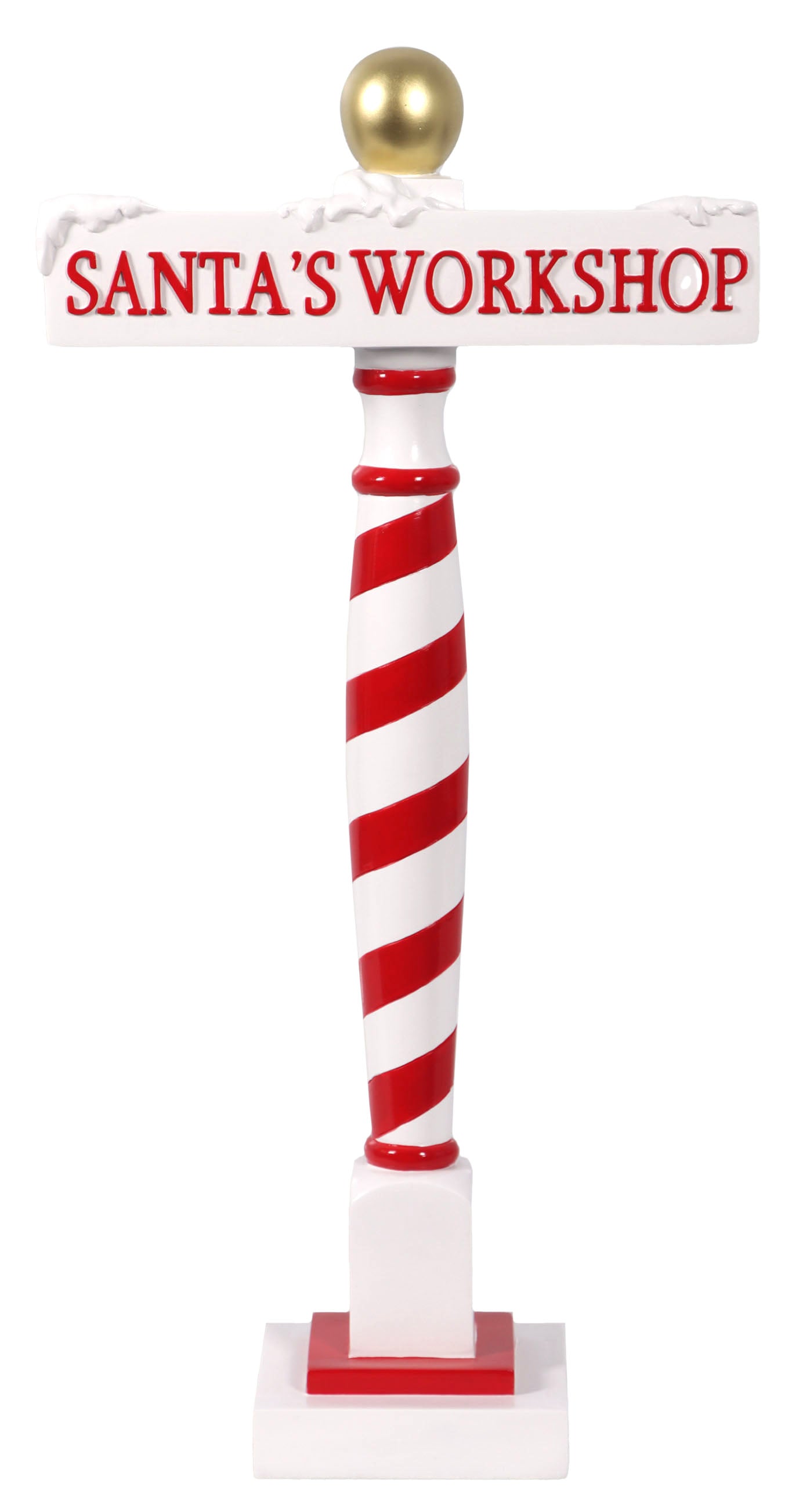 A street sign straight from the North Pole itself! The 3’ red and white barber style sign saying Santa’s Workshop. This polyresin sign is perfect for any Christmas venue.