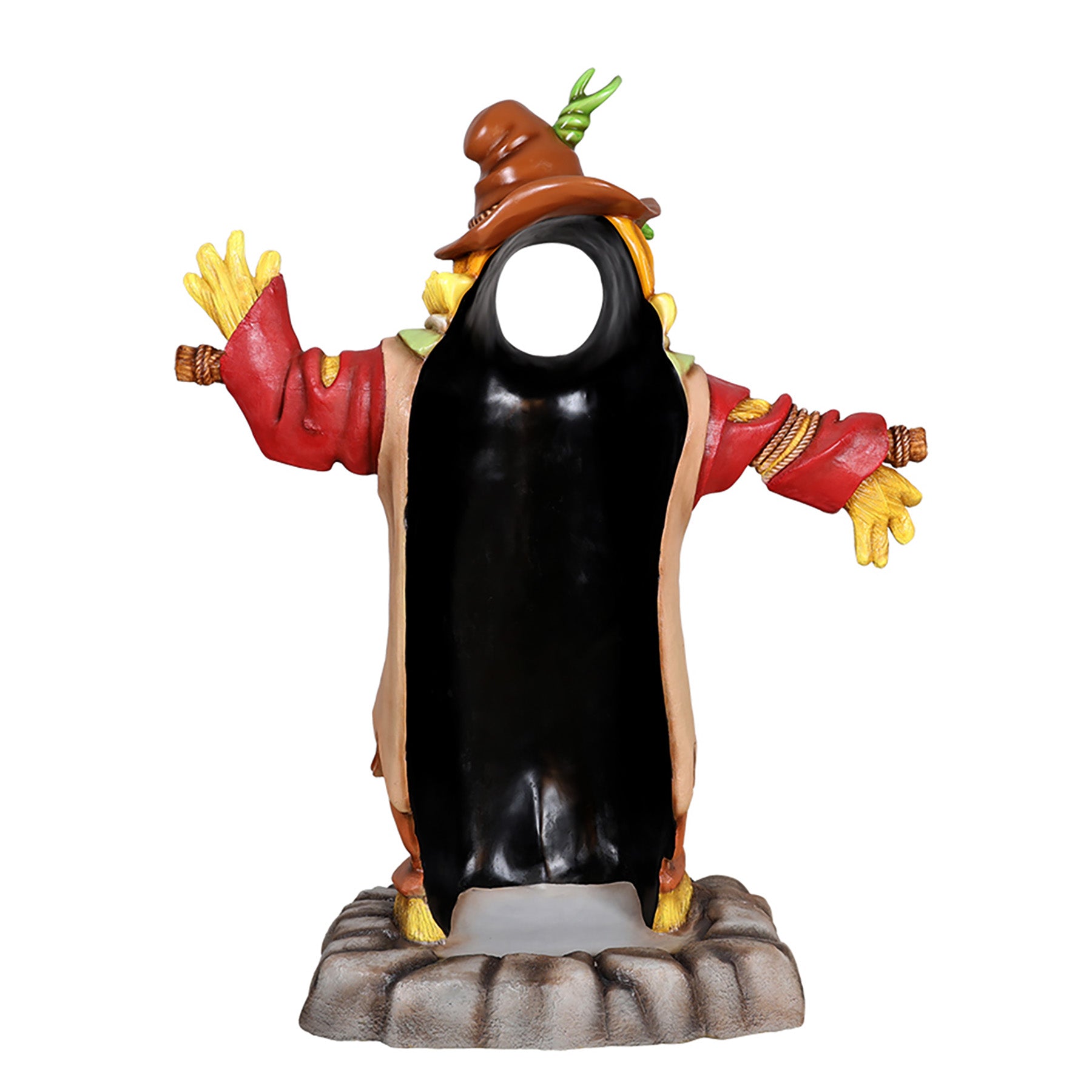 Live out your scarecrow dreams this Halloween with this 6' tall Scarecrow Photo Op! This scarecrow is wearing the traditional ragged clothing with different pieces of fabric used to mend his clothes. One arm is lifted, and one sticks straight out, but this scarecrow isn't scaring anyone but himself! Place him both inside and outside so that people from everywhere can take their photo to live out their scarecrow dreams!