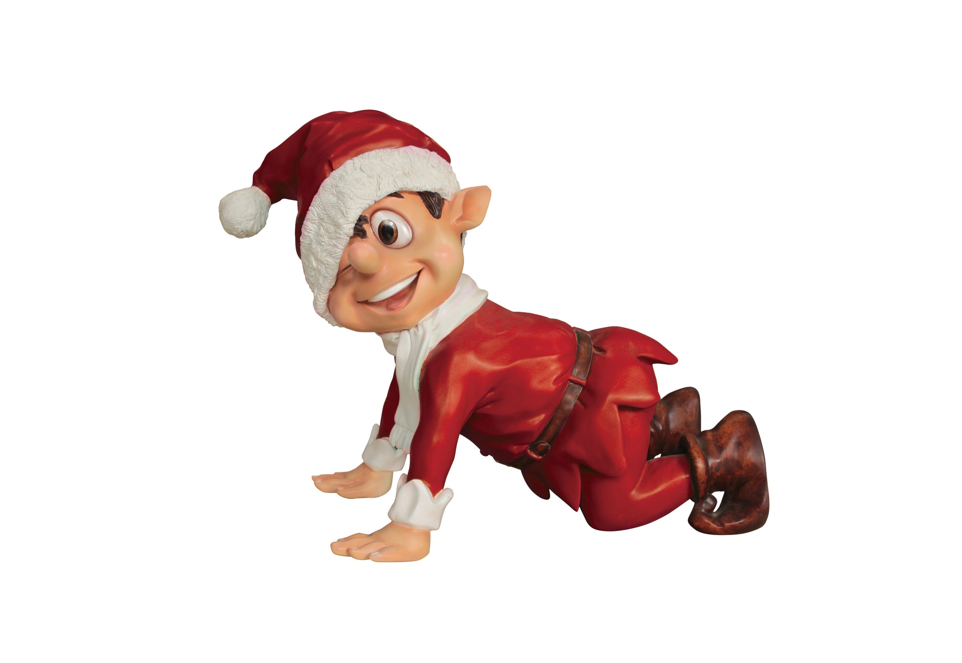 Santa has his hands full with this 25" crawling mischievous elf. This elf is made of polyresin.