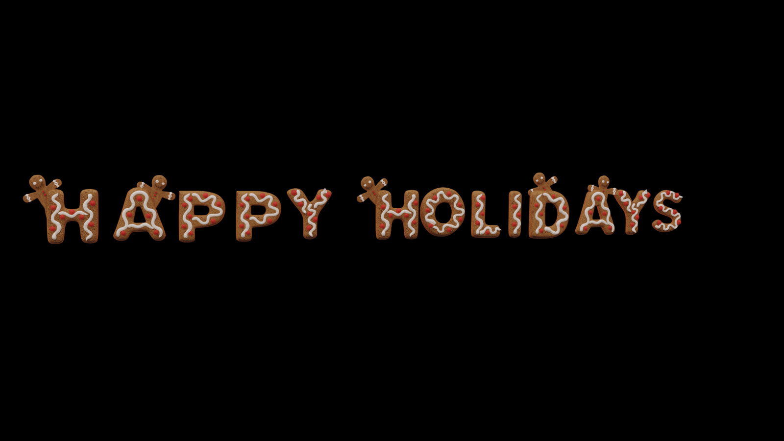 Christmas delight is not complete without gingerbread. The Happy Holidays sign is piped with white icing, color candy dots, and five gingerbread characters popping out throughout the sign.