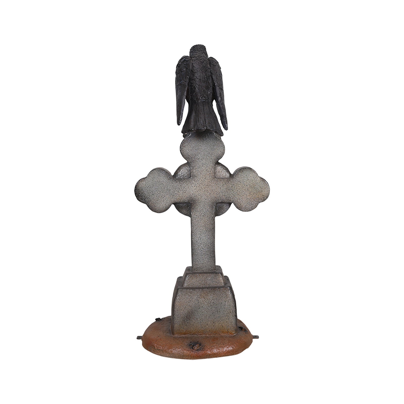 This striking 5-foot gravestone cross features an intricately perched crow, creating a dramatic focal point for cemetery displays or Halloween installations. Crafted with attention to architectural detail, the cross combines classic gothic aesthetics with lifelike bird sculpture. The substantial height ensures visibility and impact from a distance, while the weathered finish complements traditional graveyard settings. Ideal for seasonal decorating, theatrical productions, or permanent memorial landscaping, this piece delivers authentic period charm with professional-grade construction.