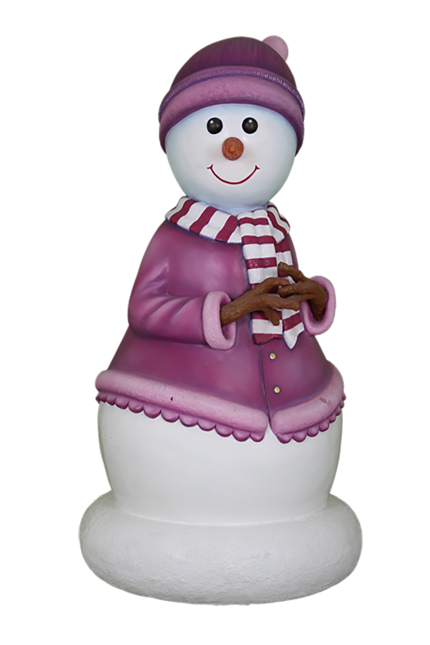 Enjoy this Snowman decoration. She is ideal for Christmas enthusiasts and decorating extremists. She stands 3" and is dressed for winter, wearing her mauve hat, jacket and scarf. She is perfect for any small display whether at home in the yard. She looks great displayed alone, or with the entire family! Made of polyresin and UV stabilized for indoor/outdoor use.