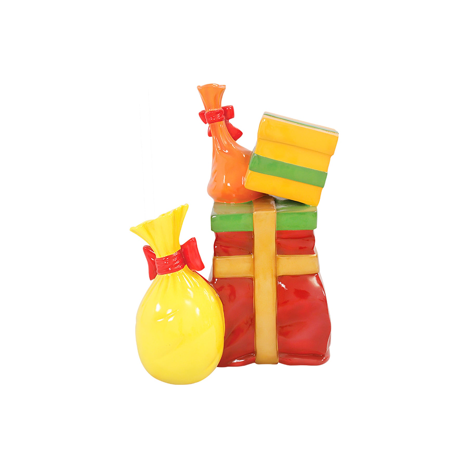Boxes, ribbons, wrapping and more! Packaged gifts are all over the Christmas season, and what better way to decorate than with enormous and divinely detailed polyresin boxes? These oversized polyresin displays incorporate multiple boxes stacked to portray larger than life decor piece. Using multiple sizes boxes to create a varied style in multiple angles, this model is anything but ordinary!